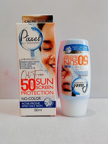 کرم ضدآفتاب فلوئیدی بدون رنگ پیکسل مخصوص پوست چرب،جوش دار ومختلط